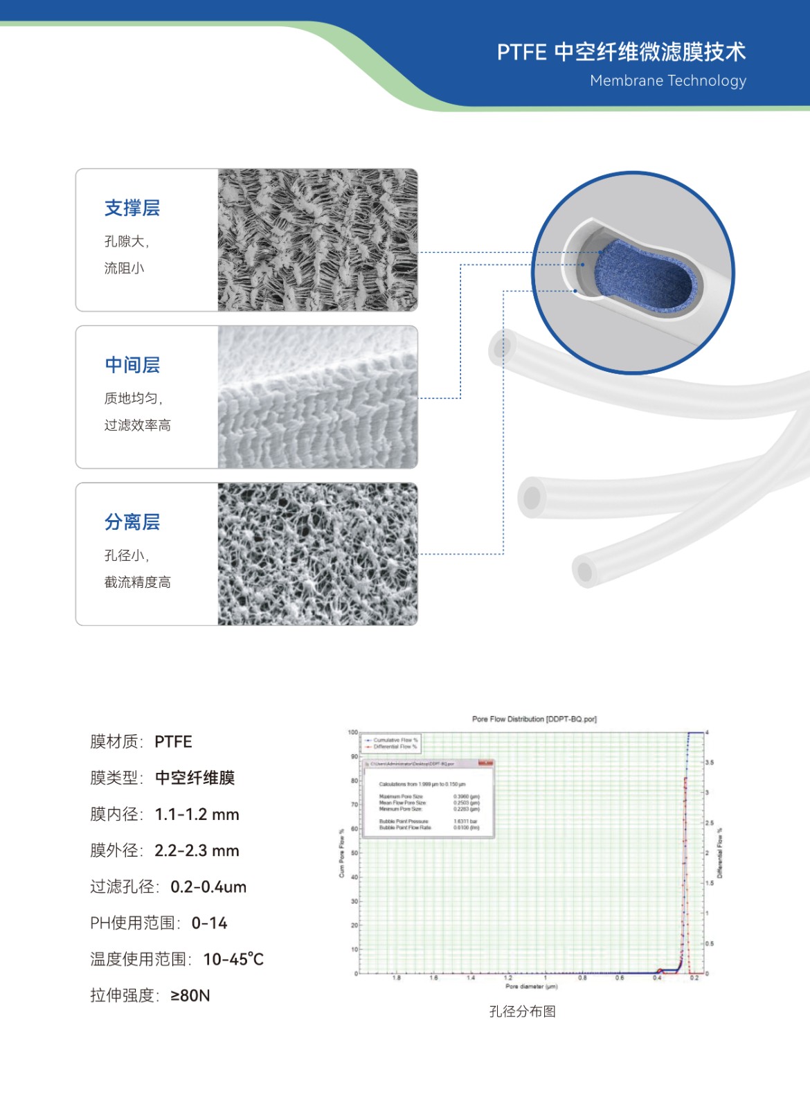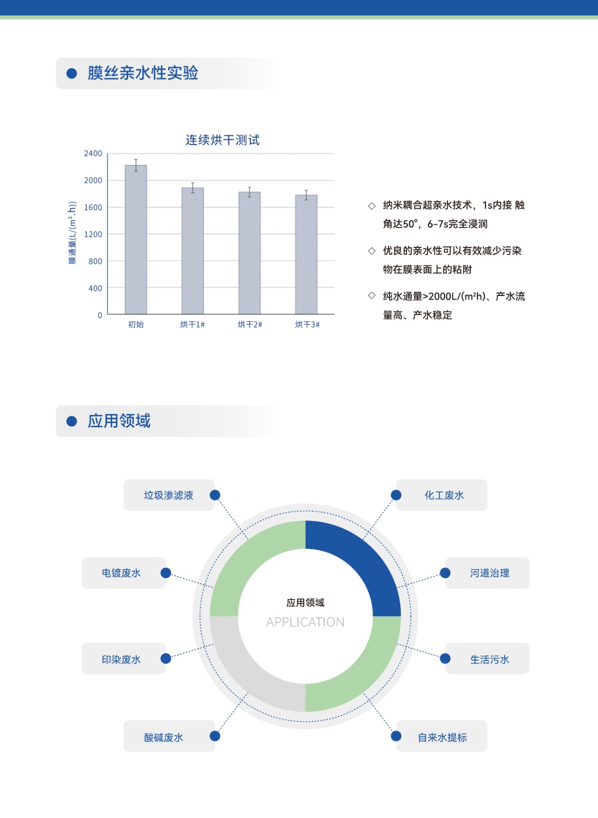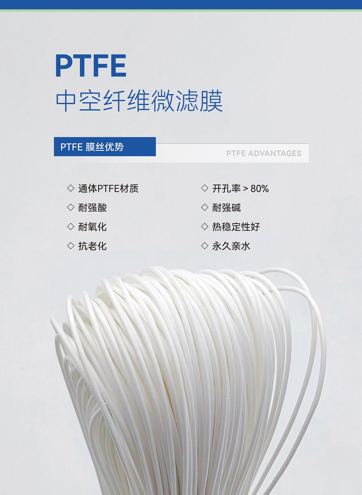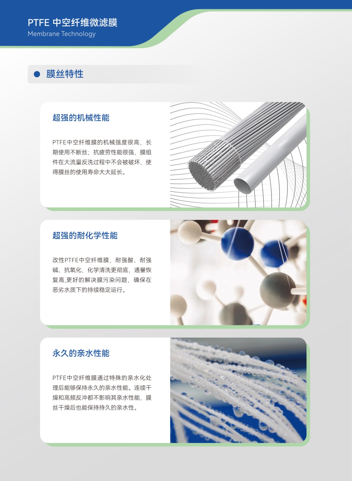工作原理:PTFE中空纤维帘式膜过滤是一个压力驱动的膜分离过程,产水方式为负压抽吸或重力静压出水。应用领域:1、大型市政生活污水深度处理;2、垃圾渗滤液。