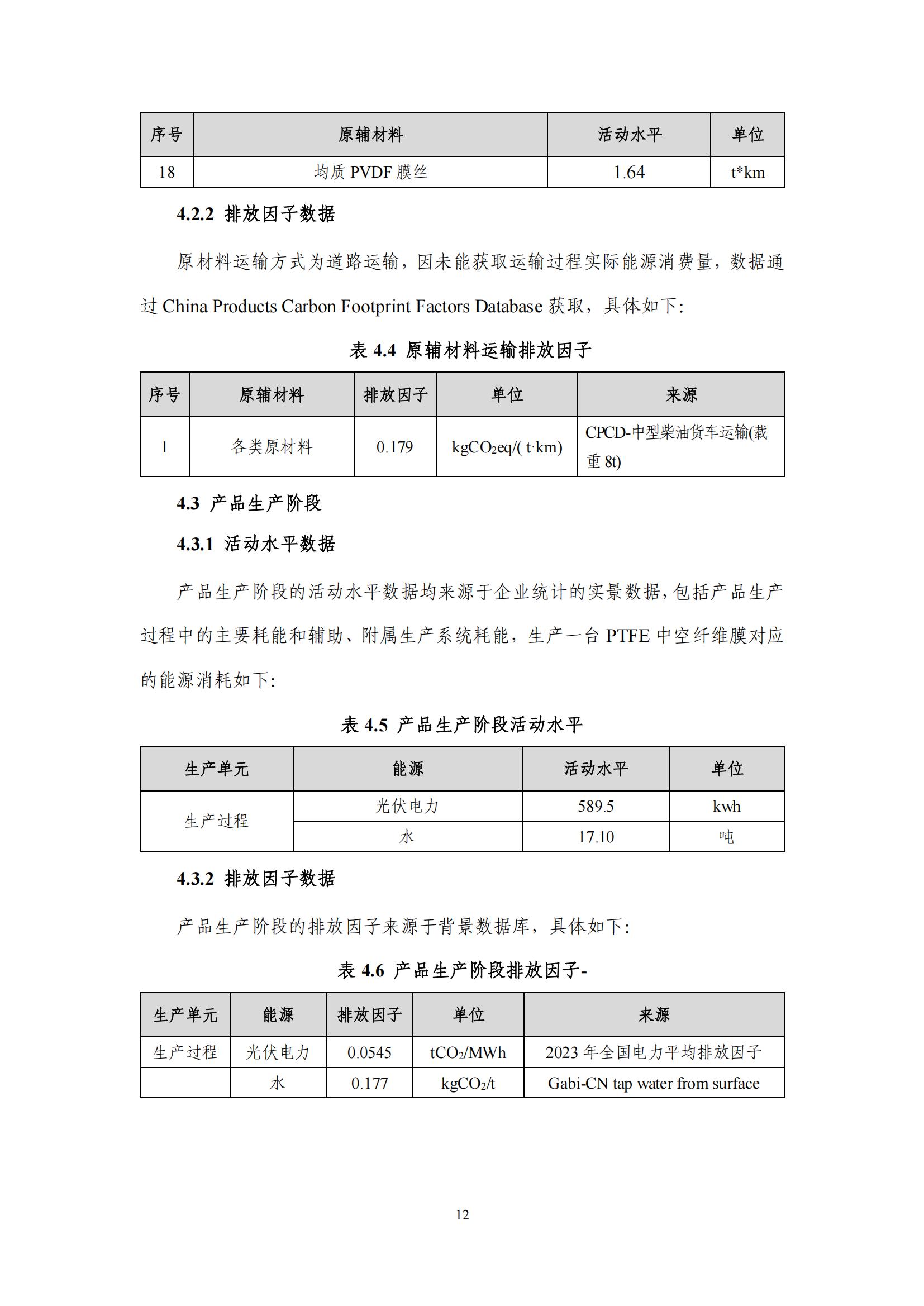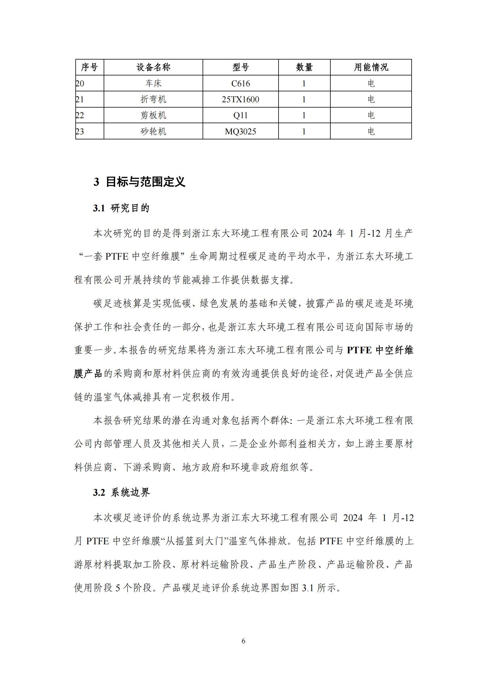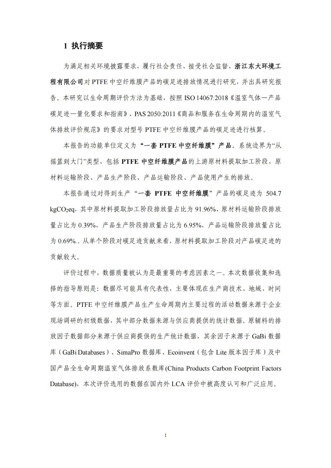产品碳足迹报告-浙江东大环境-PTFE中空纤维膜(2024)