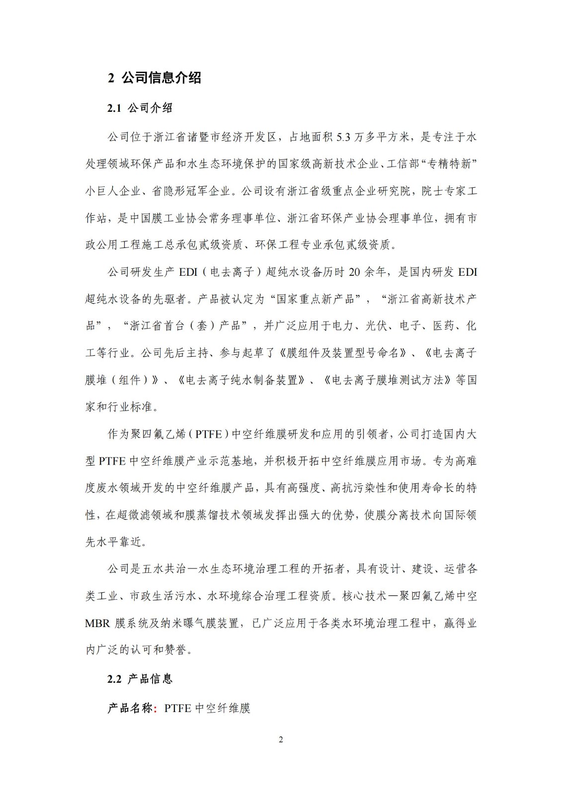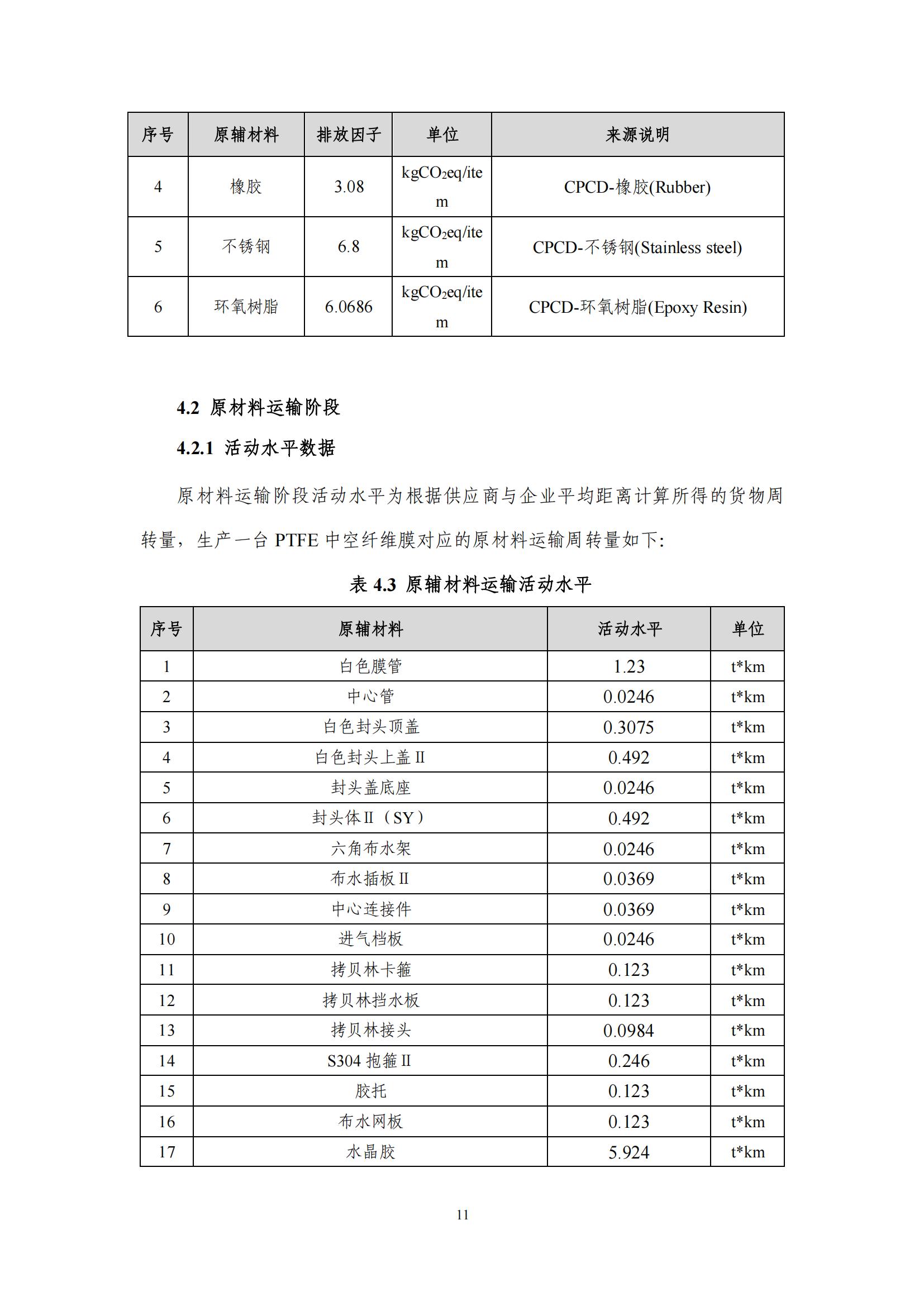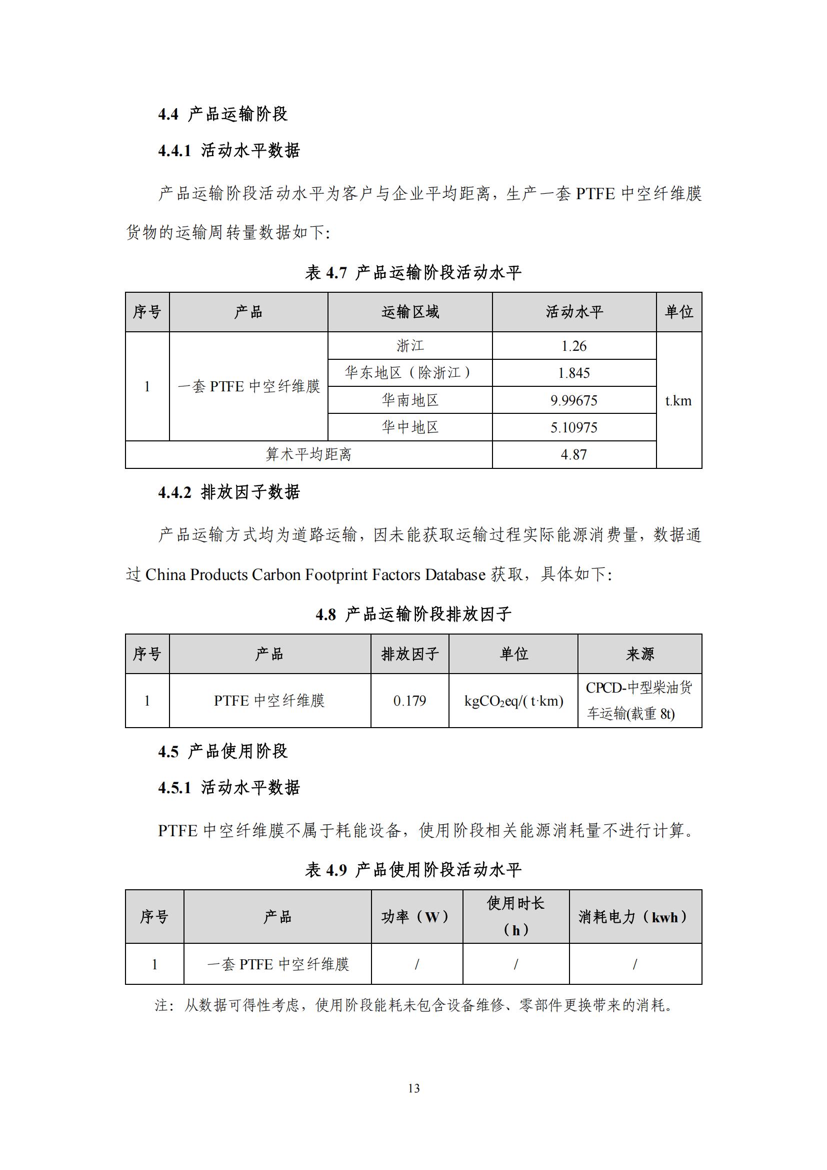 产品碳足迹报告-浙江东大环境-PTFE中空纤维膜(2024)